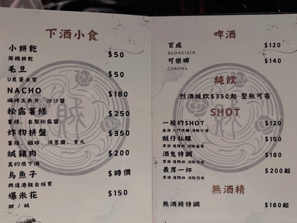 酒單有賊仔坊目前的新品酒單